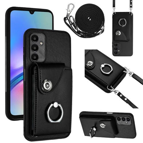 Funda para Teléfono Samsung Galaxy A15 4G con Soporte para Anillo y Bolsa para Tarjeta con Cordón Largo (Negro)