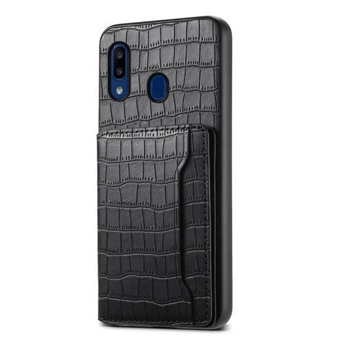 Estuche para Teléfono Samsung Galaxy A20 A30 Bolsa para Tarjetas con Textura de Cocodrilo (Negro)