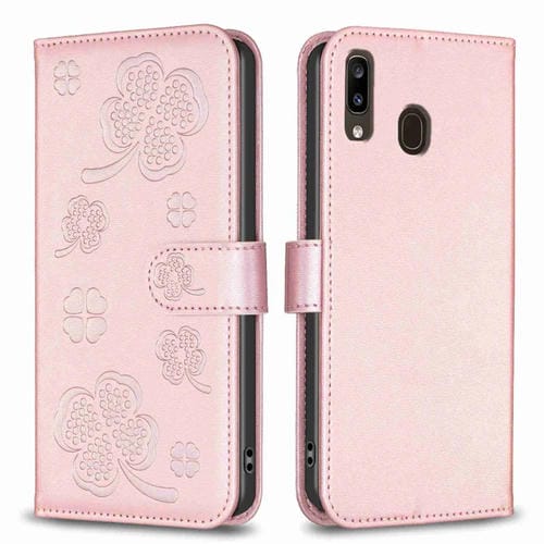 Funda para Teléfono Samsung Galaxy A20 / A30 Cuero Relieve Cuatro Hojas (Rosa)