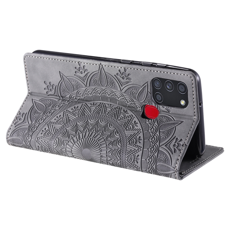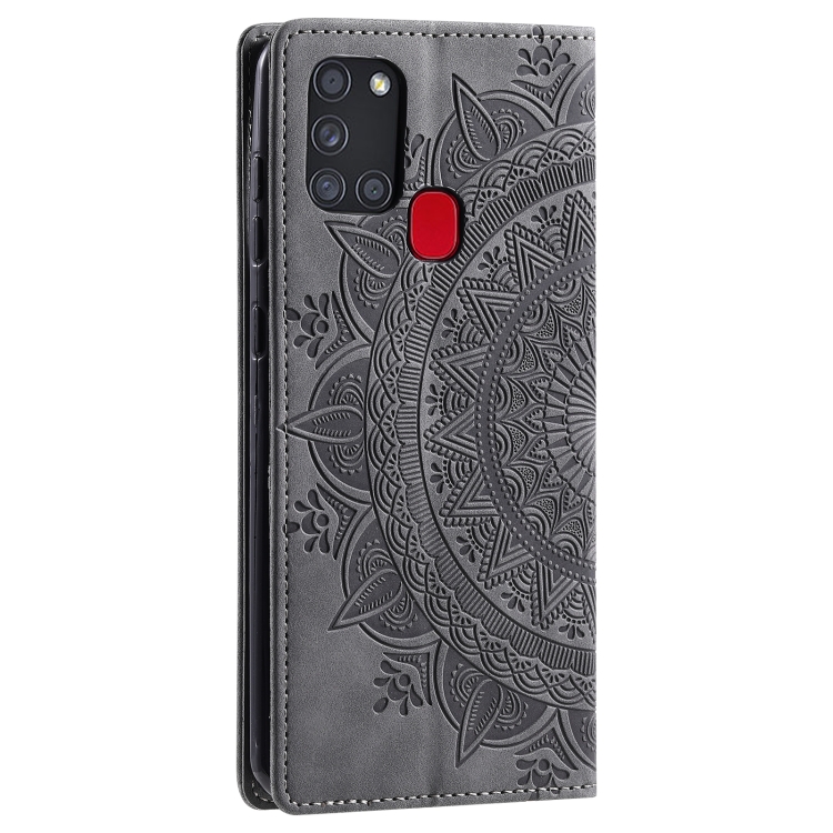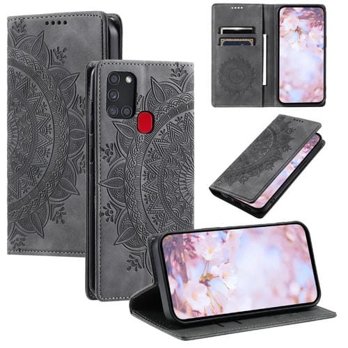 Funda para Samsung Galaxy A21S Totem Cuero Magnética En Relieve (Gris)