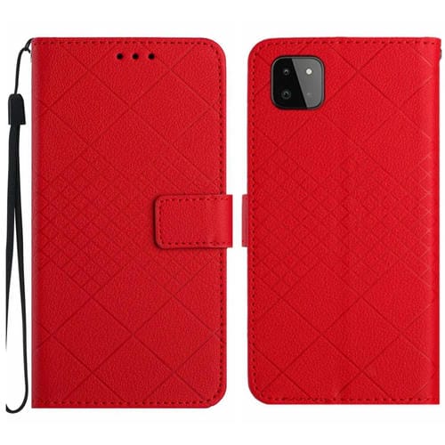 Funda para Samsung Galaxy A22 5G Cuero Textura Rejilla Rómbica (Rojo)