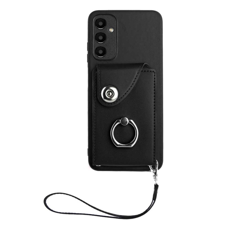 Funda para Teléfono Samsung Galaxy A24 4G de PU con Soporte para Anillo y Bolsa para Tarjeta con Cordón (Negro)