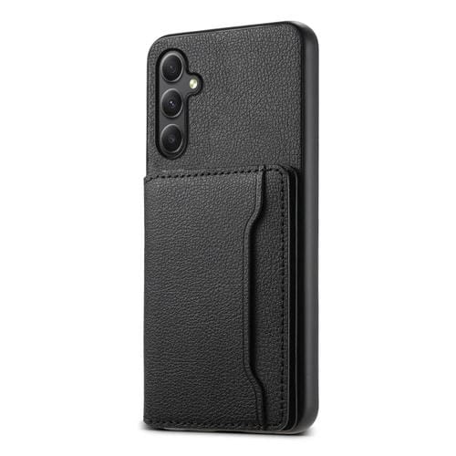 Estuche para teléfono Samsung Galaxy A24 5G diseño bolsa para tarjetas textura de becerro (Negro)