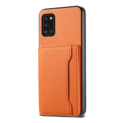 Funda para Teléfono Samsung Galaxy A31 4G con Diseño de Bolsa para Tarjetas y Textura de Becerro (Naranja)