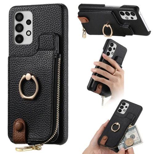 Funda para Samsung Galaxy A32 4G Litchi Leather Oil Edge Ring Zipper Wallet Back (Negro)