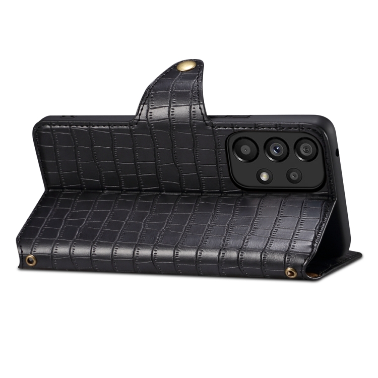 Funda para Teléfono Samsung Galaxy A33 5G Denior Cuero Borde de Aceite Textura de Cocodrilo (Negro)