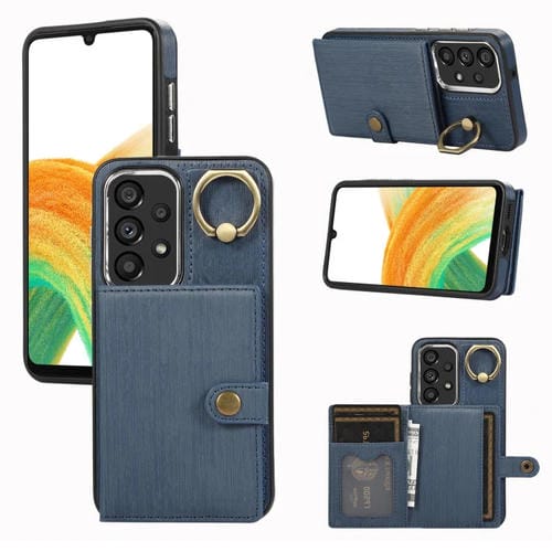 Funda para Teléfono Samsung Galaxy A33 5G con Soporte para Anillo y Billetera con Textura Cepillada (Azul)