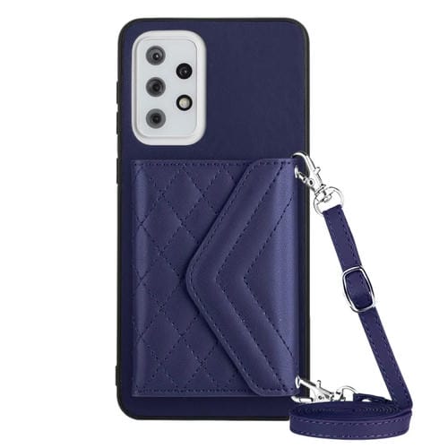 Funda para Teléfono Samsung Galaxy A33 5G con Bolsa para Tarjetas Rfid Textura Rómbica y Cordón Largo (Púrpura Oscuro)