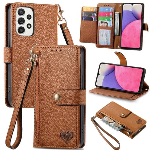 Funda para Samsung Galaxy A33 5G Love Zipper Lanyard de Cuero para Teléfono (Marrón)