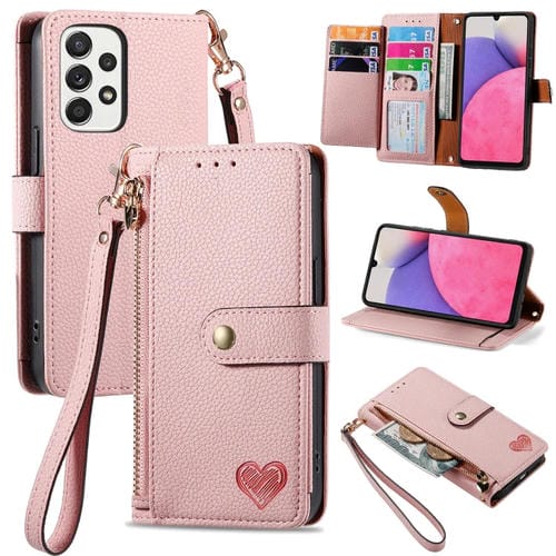 Funda para Samsung Galaxy A33 5G Love Zipper Lanyard de Cuero para Teléfono (Rosa)