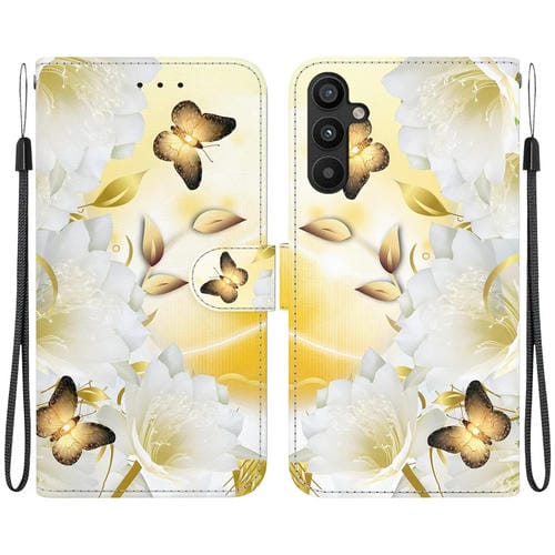 Funda de Cuero Samsung Galaxy A34 5G con Dibujo Coloreado y Textura de Cristal (Epiphyllum de Mariposa Dorada)