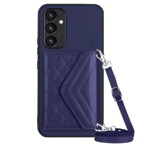 Funda para Teléfono Samsung Galaxy A34 5G Rfid con Bolsa para Tarjetas Textura Rómbica y Cordón Largo (Púrpura Oscuro)
