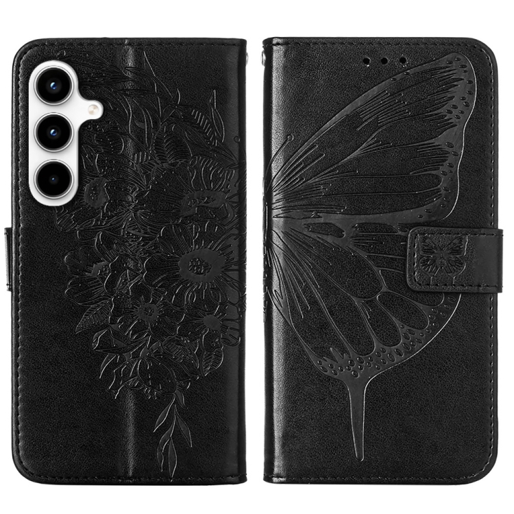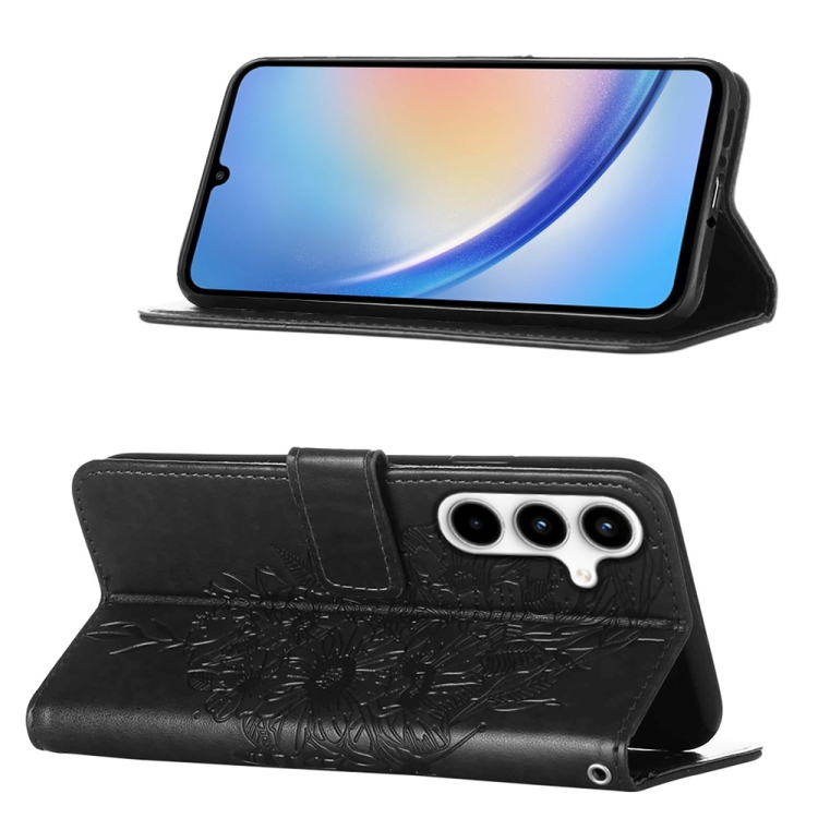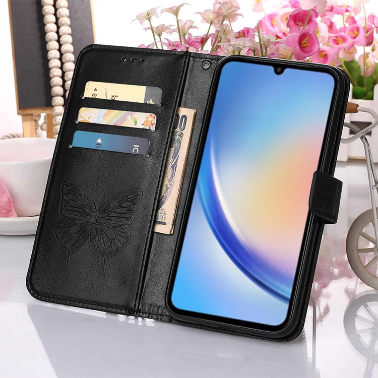 Funda de Cuero Samsung Galaxy A35 5G con Mariposa en Relieve (Negro)