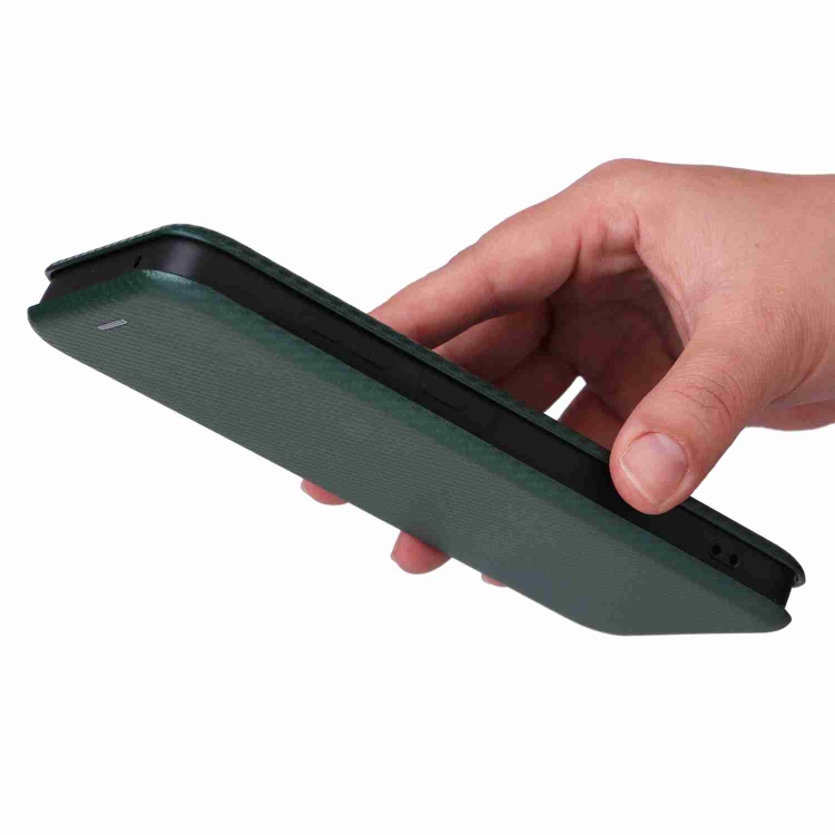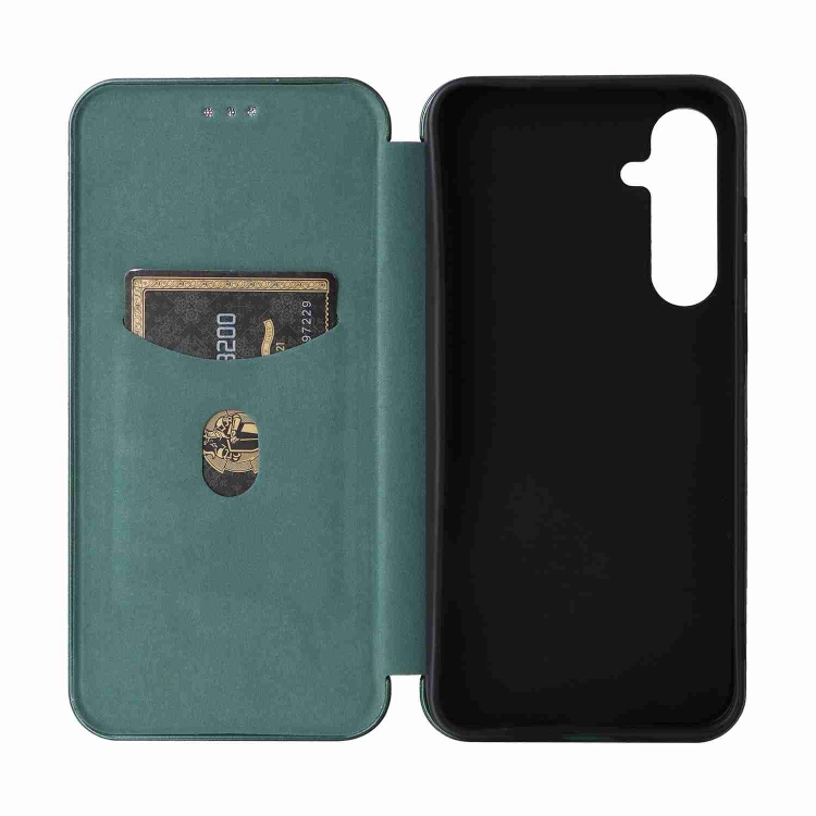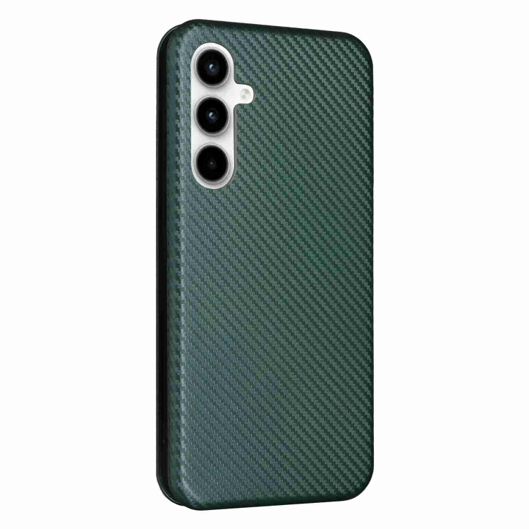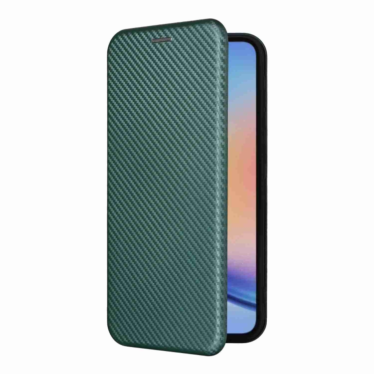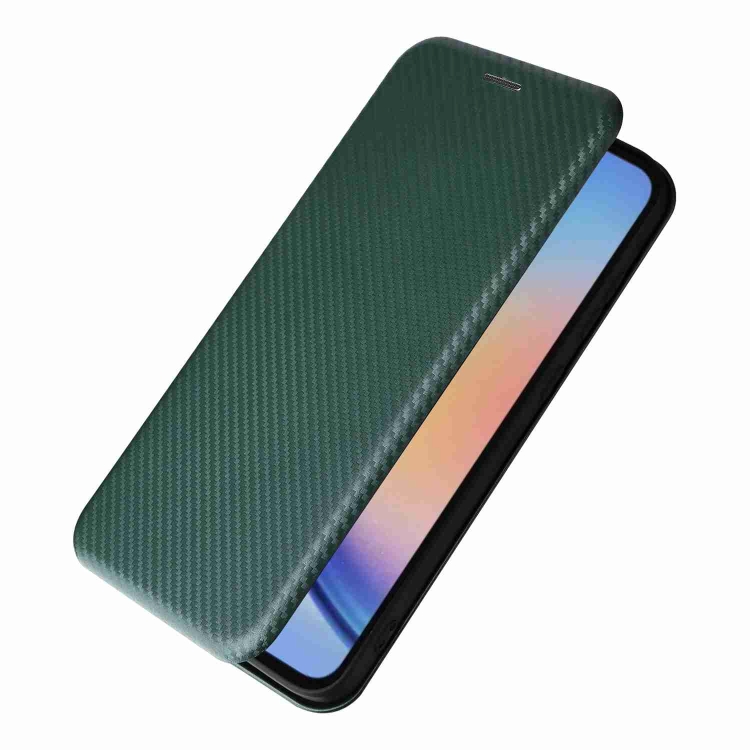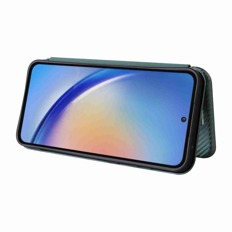Funda de Cuero para Samsung Galaxy A35 5G con Tapa y Textura de Fibra de Carbono (Verde)