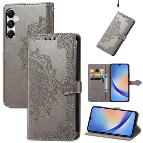 Funda para Teléfono Samsung Galaxy A35 5G Cuero con Relieve de Flor de Mandala (Gris)