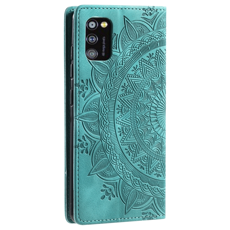 Funda de Cuero Magnética Totem para Samsung Galaxy A41 en Relieve (Verde)