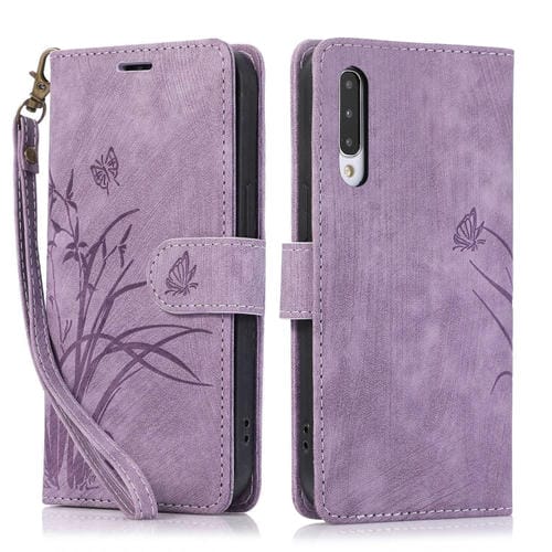 Funda para Teléfono Samsung Galaxy A50 A50S Cuero Relieve Mariposa Orquídea (Púrpura)