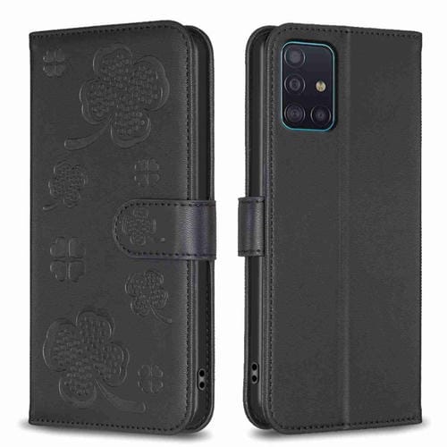 Funda de Cuero Samsung Galaxy A51 4G con Relieve de Cuatro Hojas (Negro)