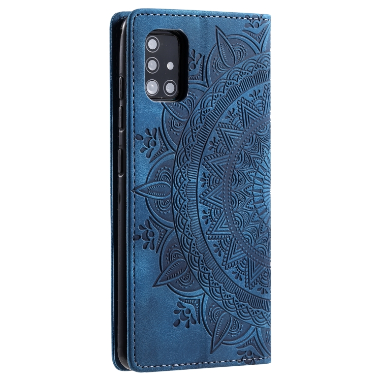 Funda de Cuero Magnética Totem para Samsung Galaxy A51 5G En Relieve (Azul)
