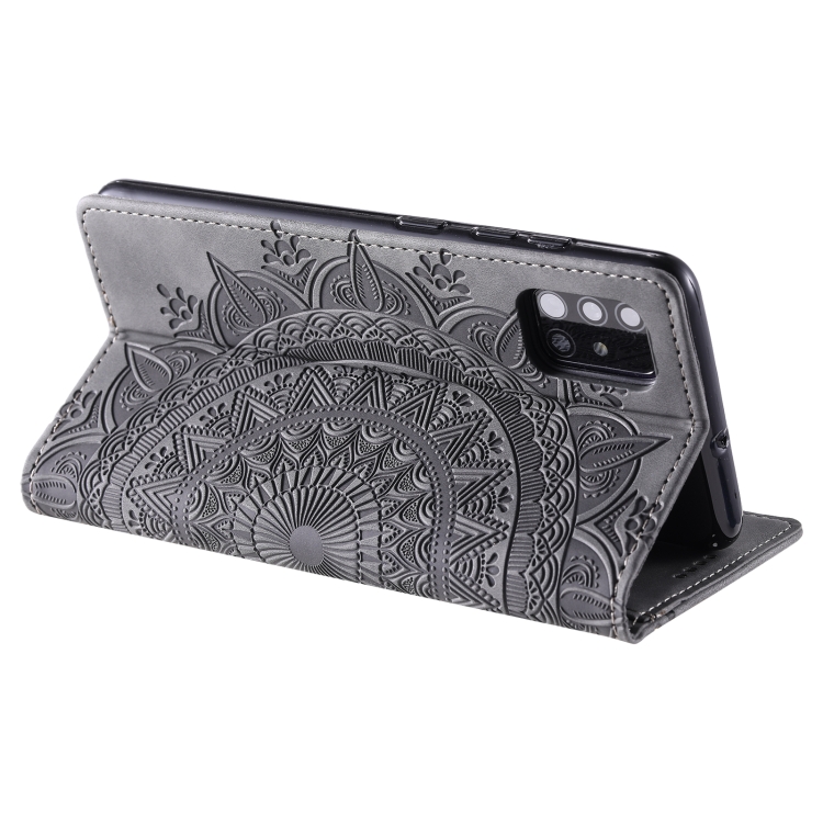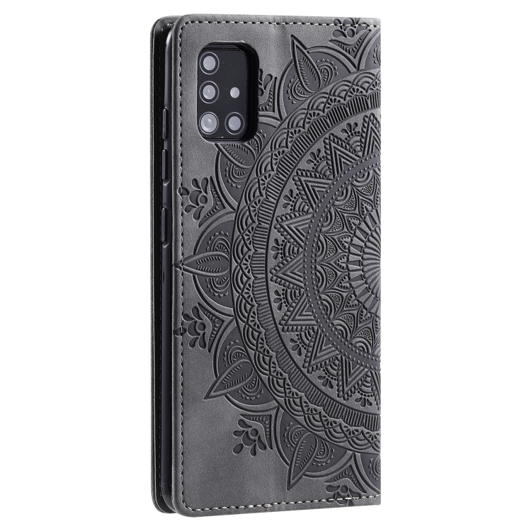 Funda de Cuero Magnética Totem para Samsung Galaxy A51 5G en Relieve (Gris)