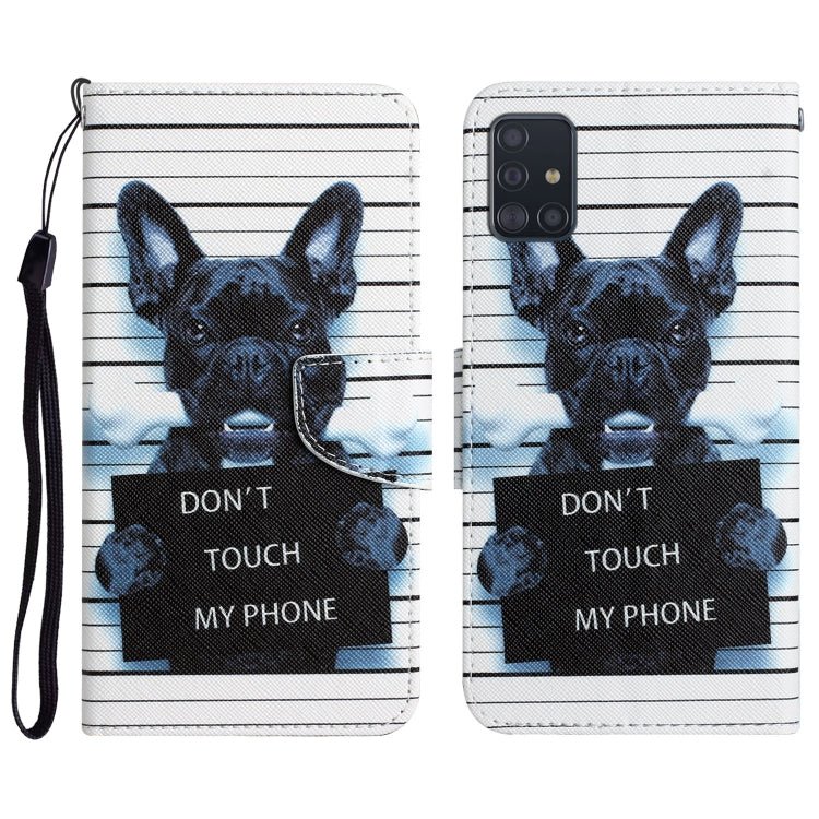 Para Samsung Galaxy A51 Funda de teléfono de cuero con dibujo coloreado (perro negro)