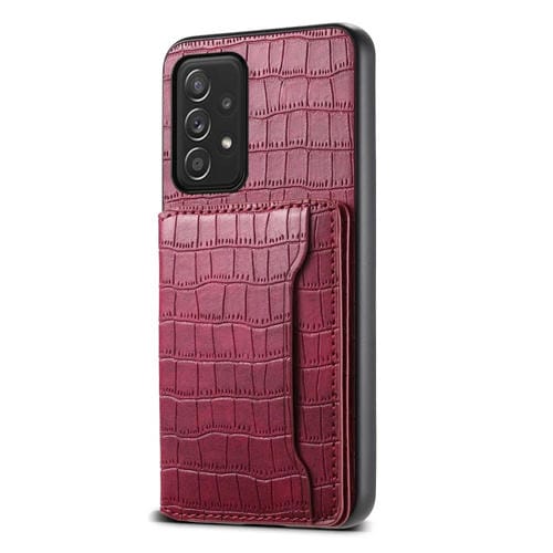 Funda para Teléfono Samsung Galaxy A52 5G Diseño Bolsa para Tarjetas Textura Cocodrilo (Rojo)
