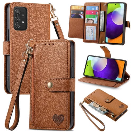 Funda para Samsung Galaxy A52 5G Love Zipper Lanyard Cuero (Marrón)