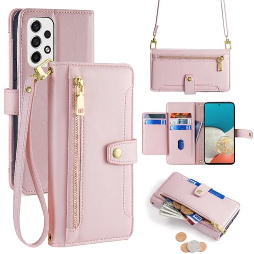 Funda de Cuero Samsung Galaxy A53 5G con Billetera y Cremallera Cuerpo Cruzado Textura de Oveja (Rosa)
