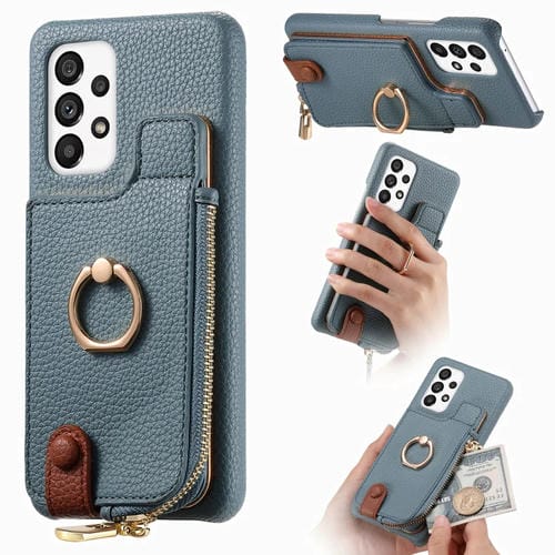 Funda para Teléfono Samsung Galaxy A53 Litchi Leather Oil Edge Ring Zipper Wallet Back (Azul)
