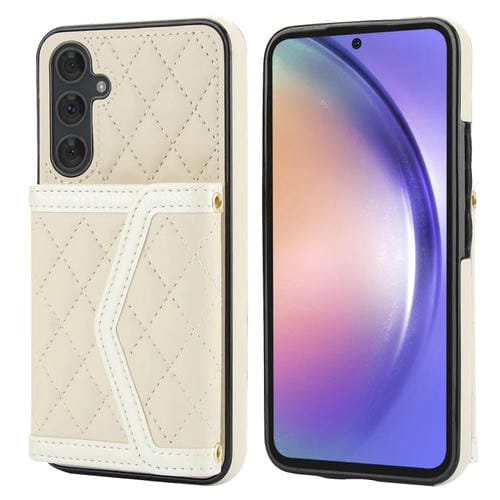 Estuche para teléfono Samsung Galaxy A54 4G 5G con bolsa para tarjetas textura rómbica y cordón largo (Beige)