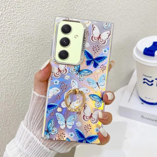 Estuche para Teléfono Samsung Galaxy A54 5G con Soporte Anillo Mariposa Láser Galvanoplastia (Azul)