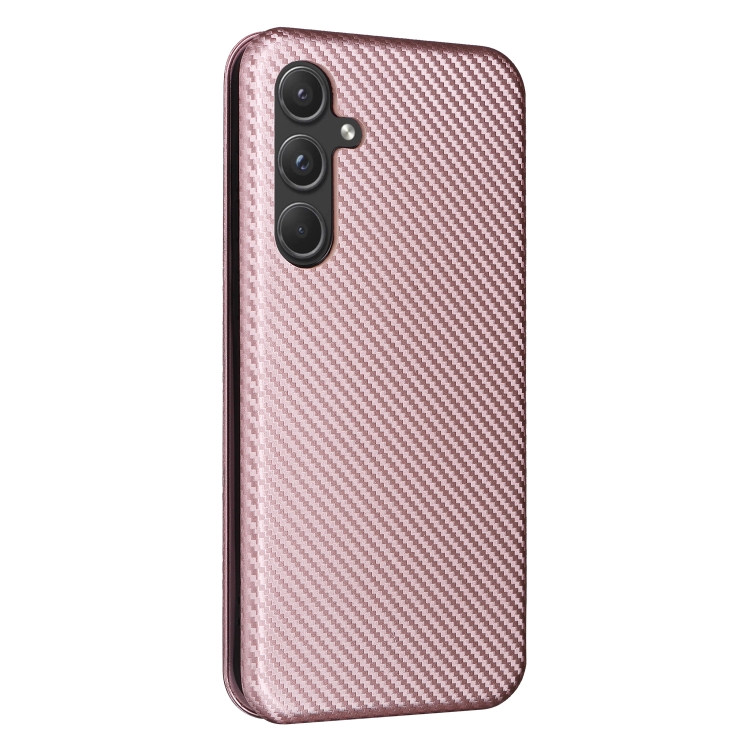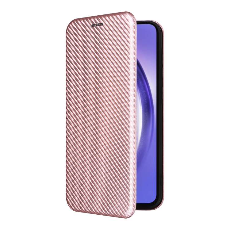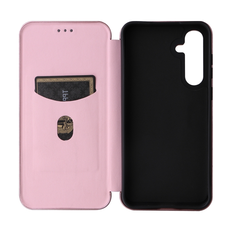 Funda para Samsung Galaxy A55 5G Cuero con Tapa Textura Fibra de Carbono (Rosa)