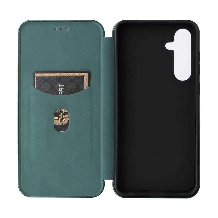 Funda para Samsung Galaxy A55 5G Cuero con Tapa Textura Fibra de Carbono (Verde)