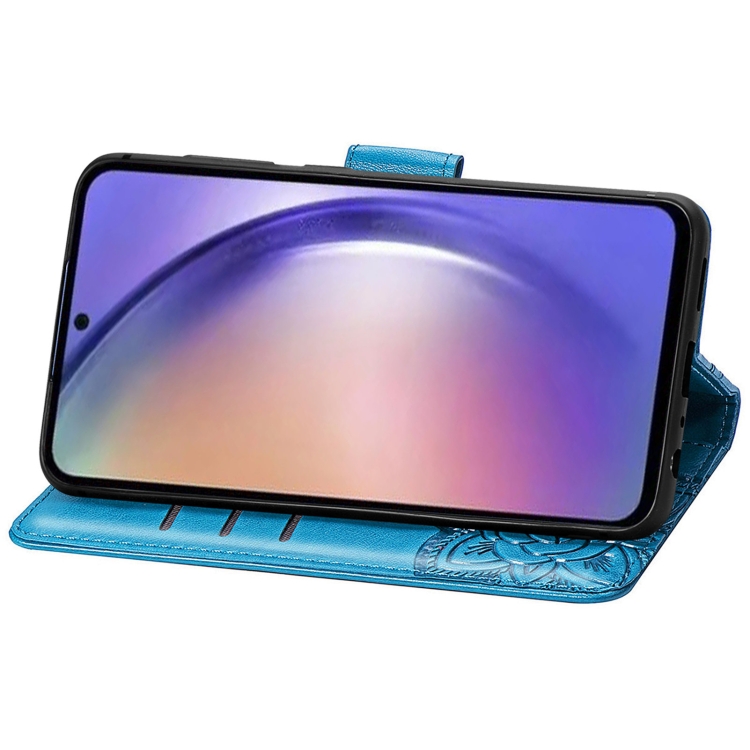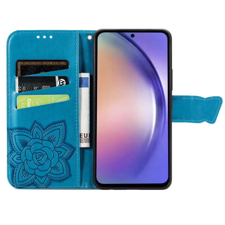 Funda para Teléfono Samsung Galaxy A55 5G Cuero Relieve Flor y Mariposa (Azul)