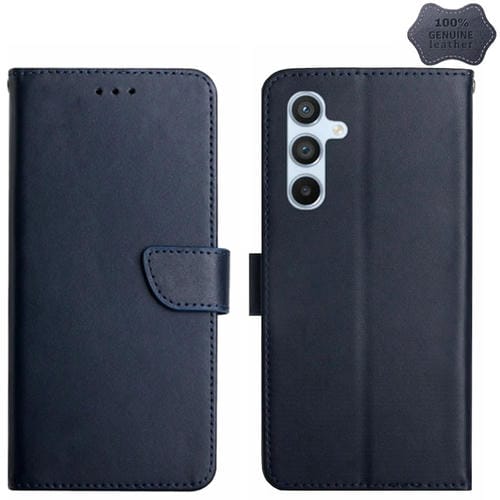 Funda para Teléfono Samsung Galaxy A55 5G Ht02 con Tapa de Cuero Genuino a Prueba de Huellas (Azul)