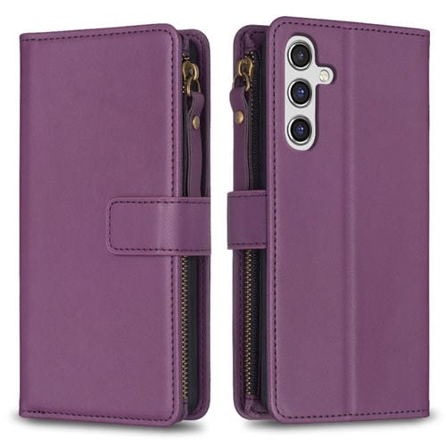 Funda para Samsung Galaxy A55 Cartera con 9 Ranuras para Tarjetas Cremallera Cuero con Tapa (Púrpura Oscuro)