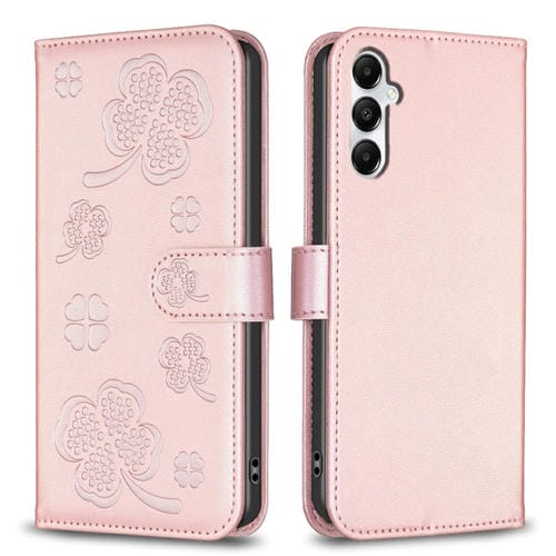 Funda de Cuero Samsung Galaxy A55 Relieve Cuatro Hojas (Rosa)