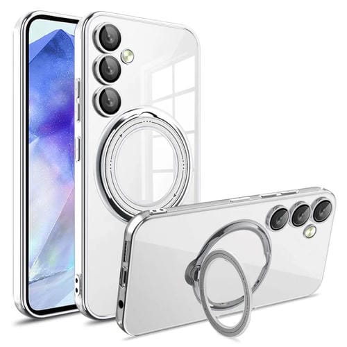 Estuche para teléfono Samsung Galaxy A55 Galvanoplastia Magsafe Soporte Rotación 360 Grados a Prueba de Golpes (Plata)