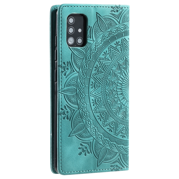 Funda de Cuero Magnética para Samsung Galaxy A71 5G Totem en Relieve (Verde)