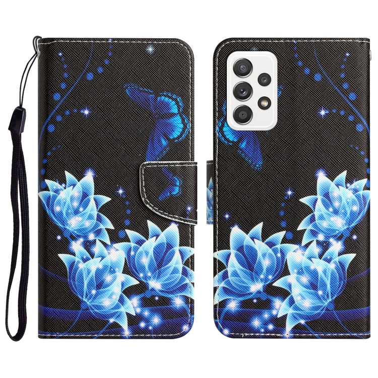 Para Samsung Galaxy A72 5G / 4G Estuche para teléfono de cuero con dibujo coloreado (mariposa azul)