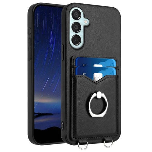 Estuche para Teléfono Samsung Galaxy F15 M15 R20 con Soporte para Tarjeta con Anillo (Negro)