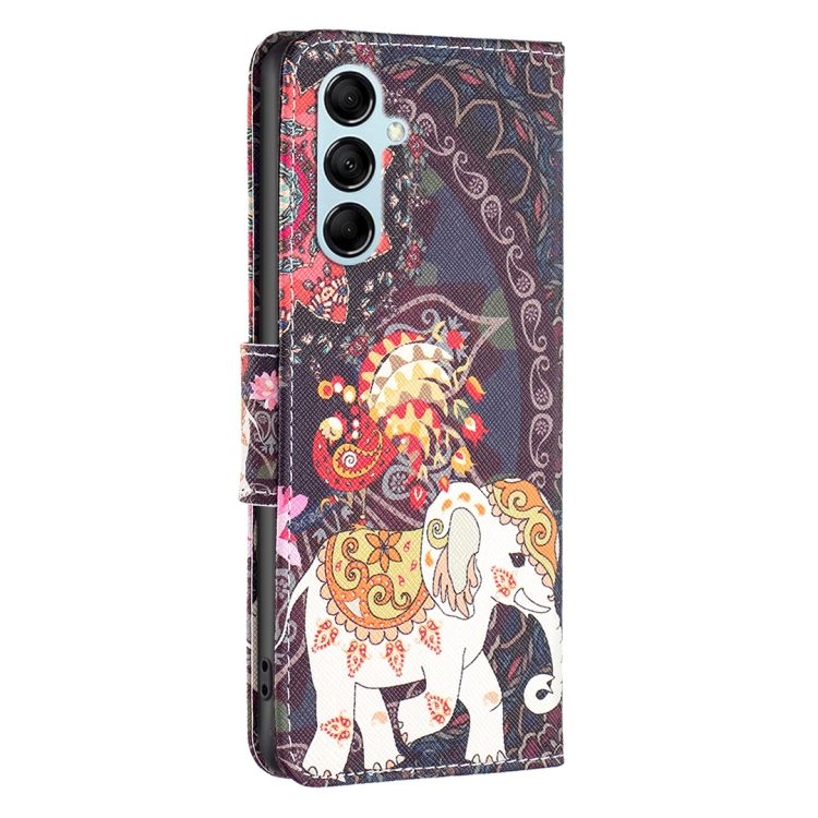 Para Samsung Galaxy M14 5G Estuche para teléfono de cuero con dibujo coloreado (elefante de flores)