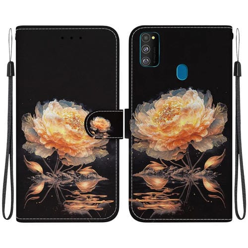 Funda para Teléfono Samsung Galaxy M30S M21 Cuero Dibujo Coloreado Textura Cristal (Peonía Dorada)