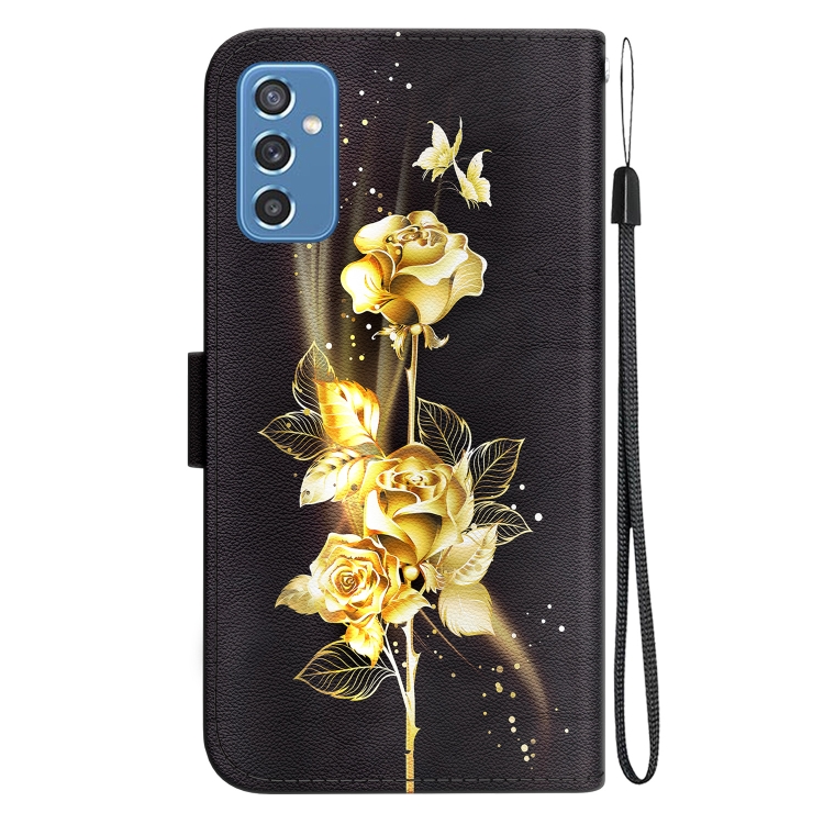 Funda para Teléfono Samsung Galaxy M52 5G Cuero Dibujo Coloreado Textura de Cristal (Mariposa Dorada Rosa)
