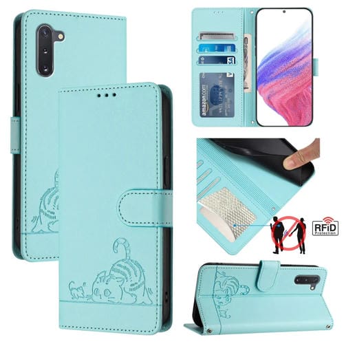Estuche para Teléfono Samsung Galaxy Note10 Cuero Rfid Patrón en Relieve y Cordón (Verde Menta)