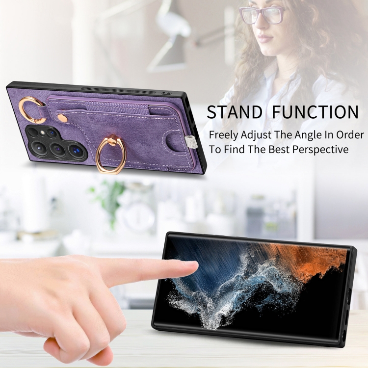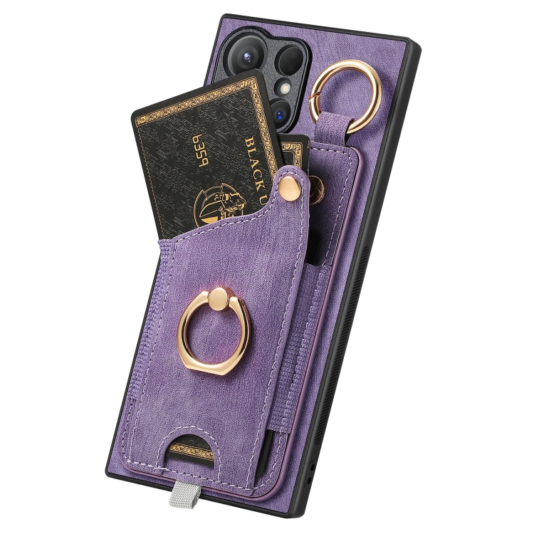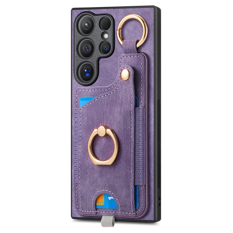 Funda para Samsung Galaxy Note10 + Estuche Retro con Bolsa para Tarjeta Anillo y Lazo para Colgar (Púrpura)