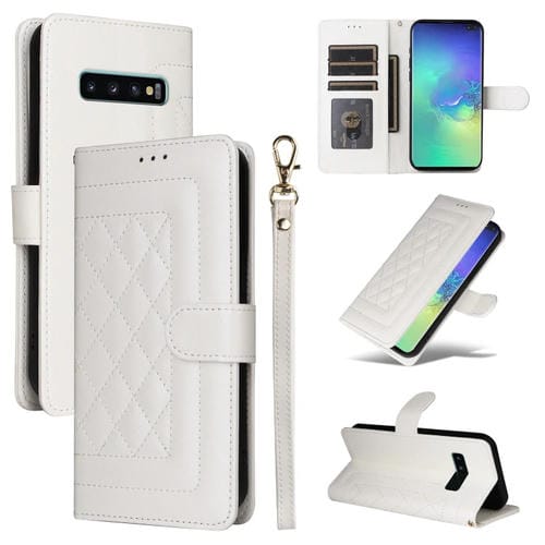 Estuche para Teléfono Samsung Galaxy S10 con Tapa de Cuero Diamond Lattice (Blanco)
