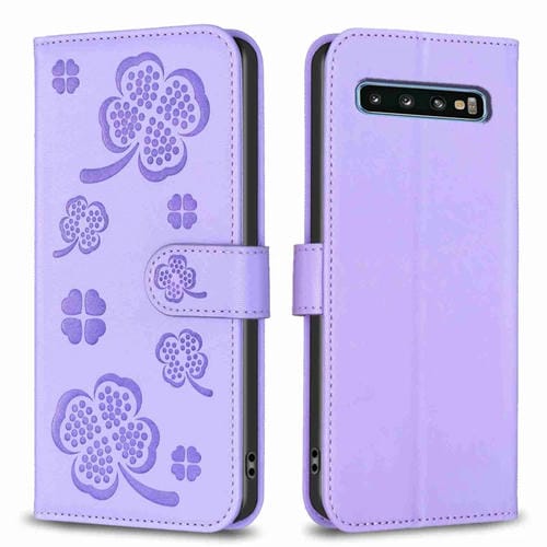 Funda para Samsung Galaxy S10 Cuero Relieve Cuatro Hojas (Púrpura)