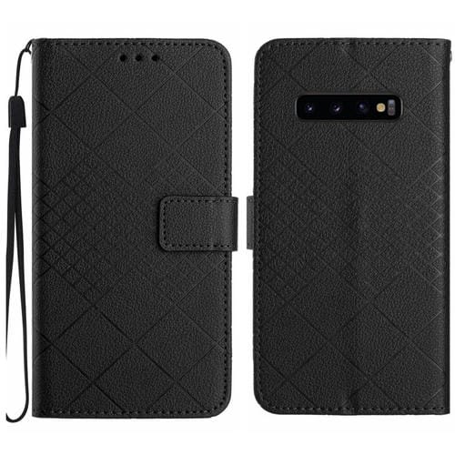 Funda de Cuero para Samsung Galaxy S10 con Textura de Rejilla Rómbica (Negro)
