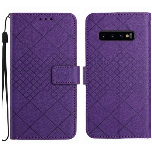 Funda de Cuero para Samsung Galaxy S10 con Textura de Rejilla Rómbica (Púrpura)